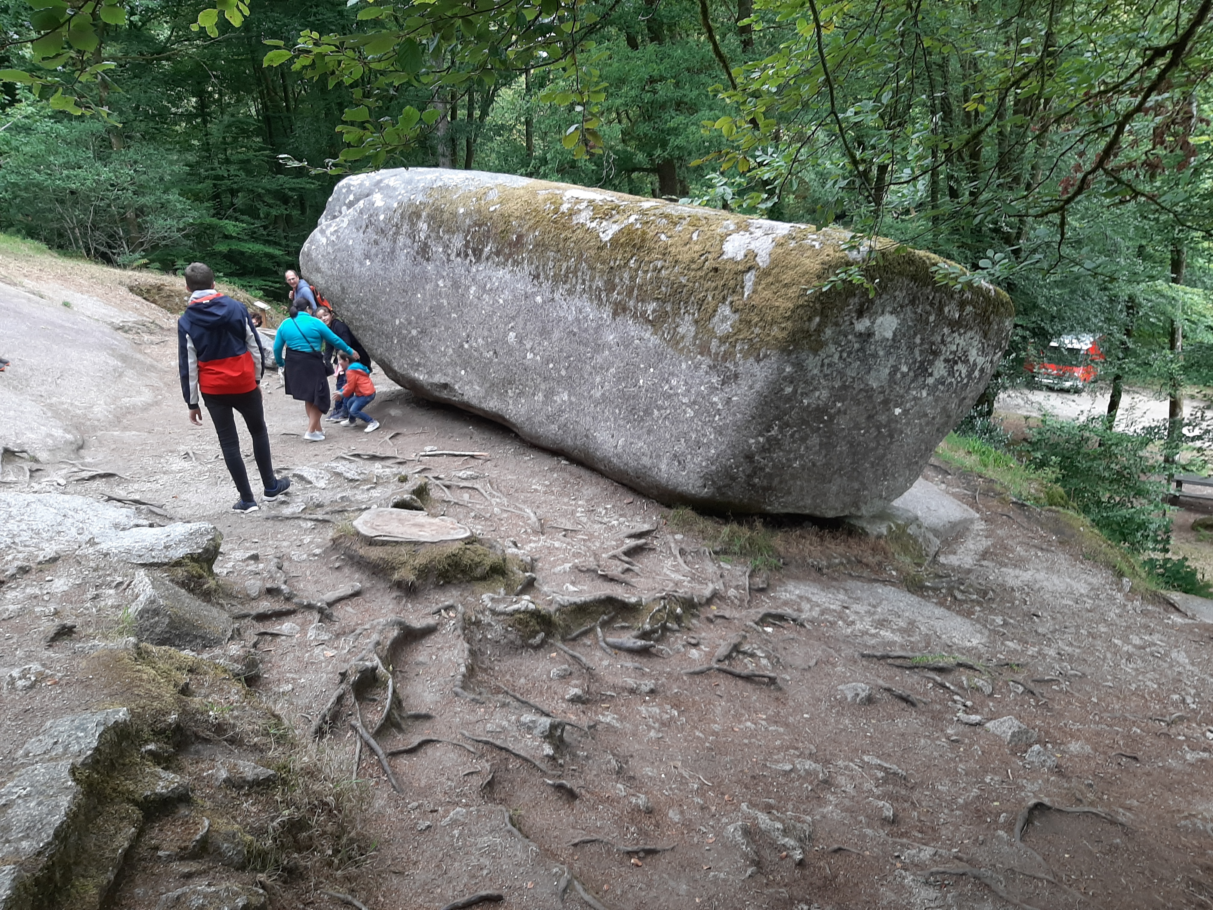 Lieu atypique. On a essayé de faire trembler la roche, mais elle n'a pas bougé d'un cm.