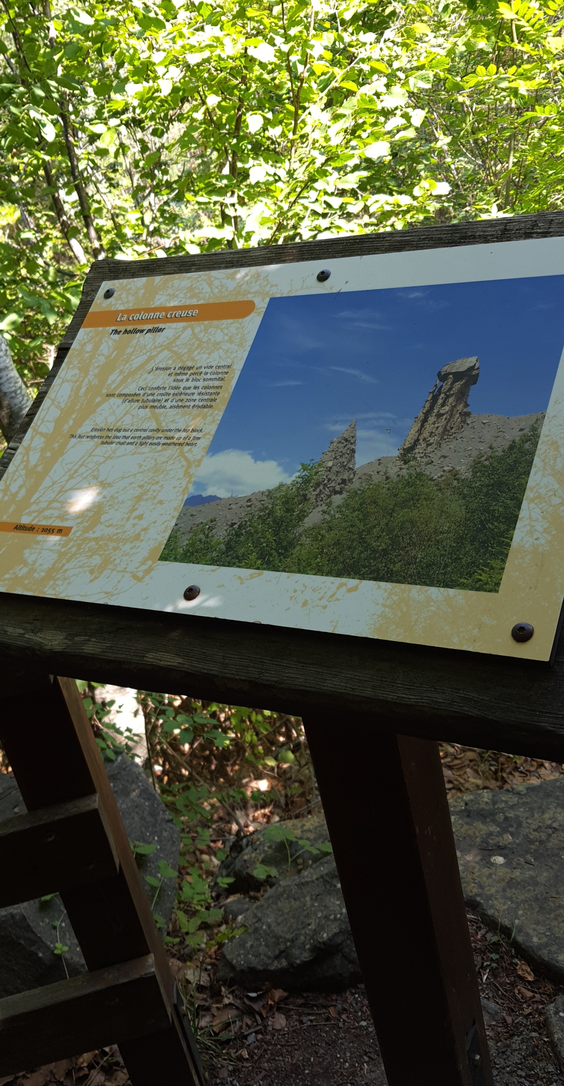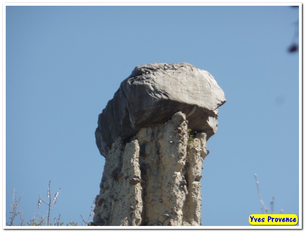 Formation rocheuse due à l'érosion qui présente l'apparence de colonnes surmontées de rochers située en bordure du lac de Serre-Ponçon. Une visite s'impose presque si vous passez à proximité, d'autant plus que l'érosion continue son œuvre inexorable et que la « prochaine fois » pourrait être trop tard !