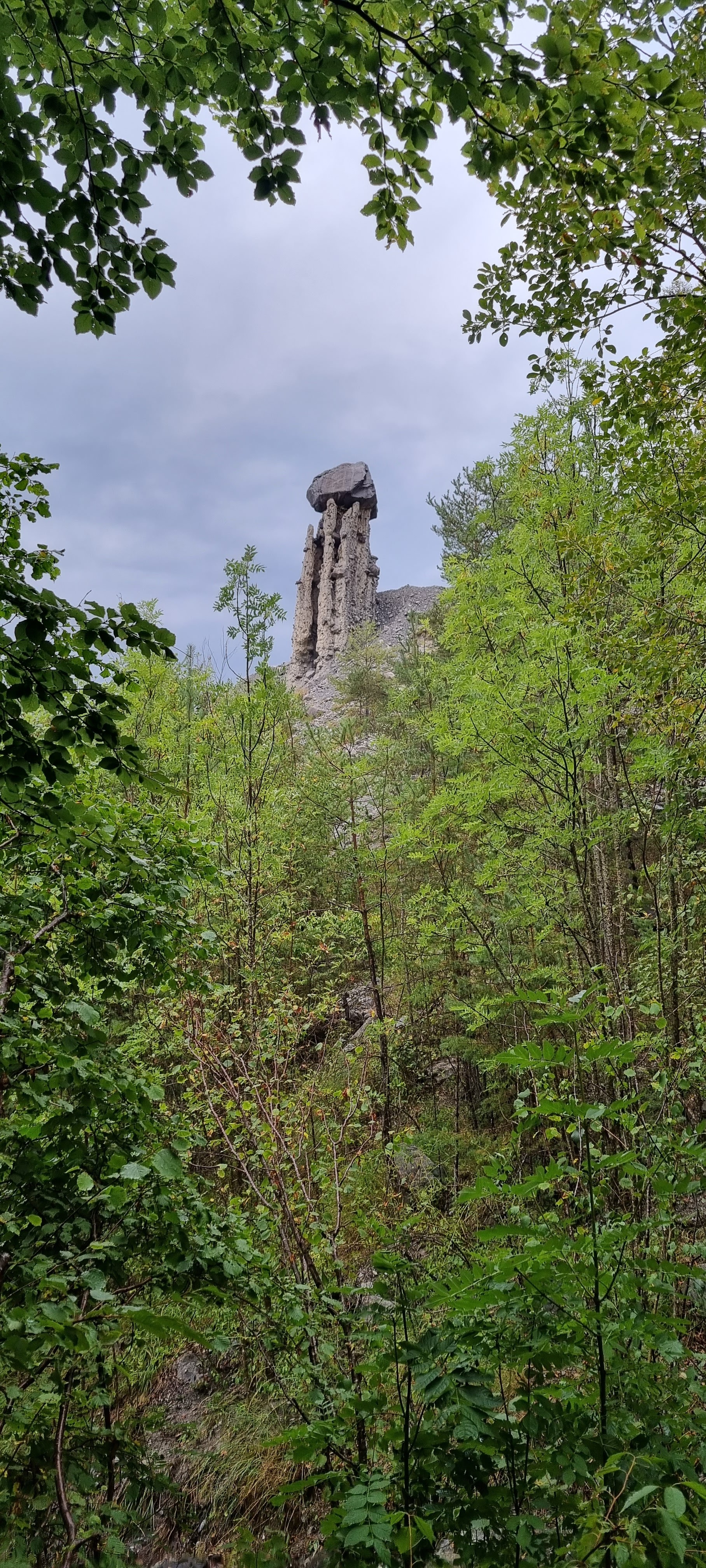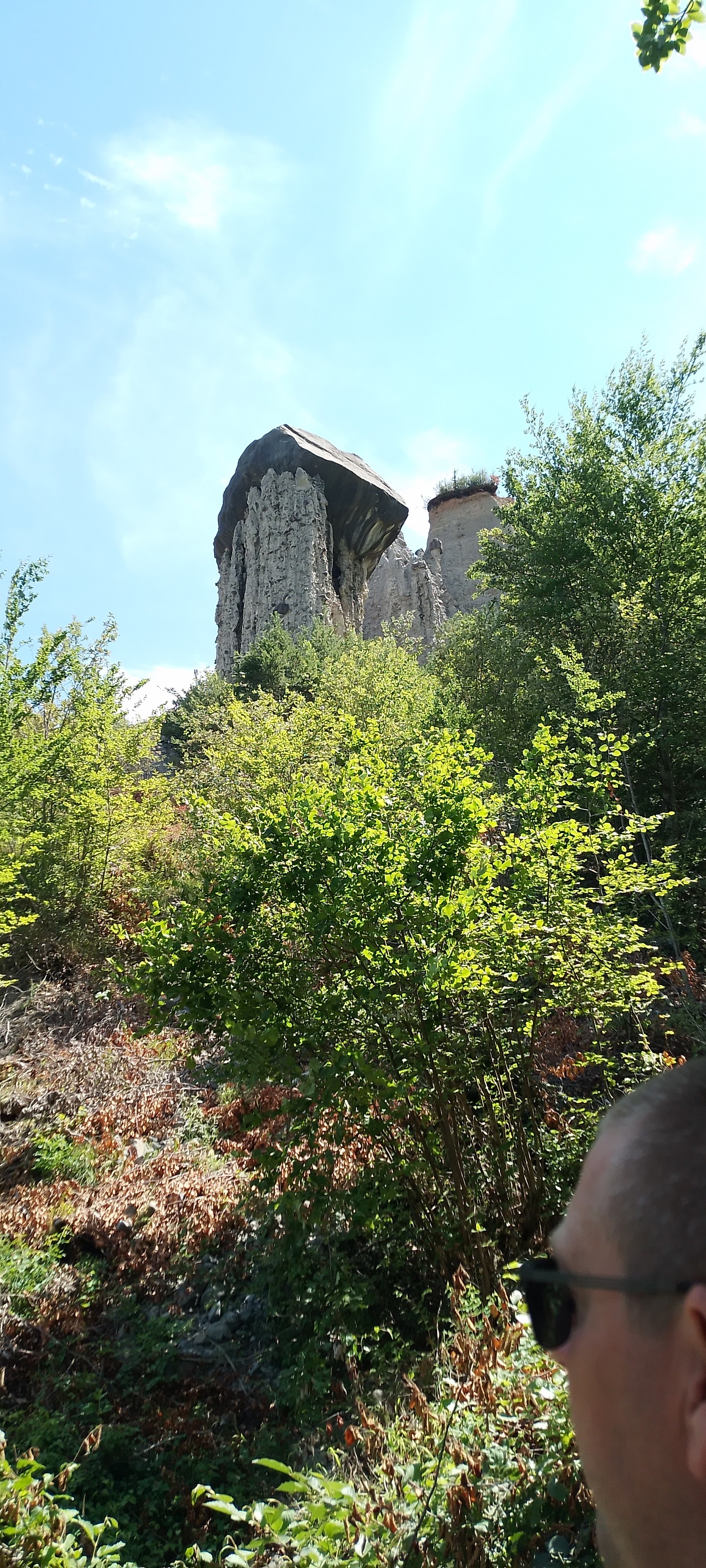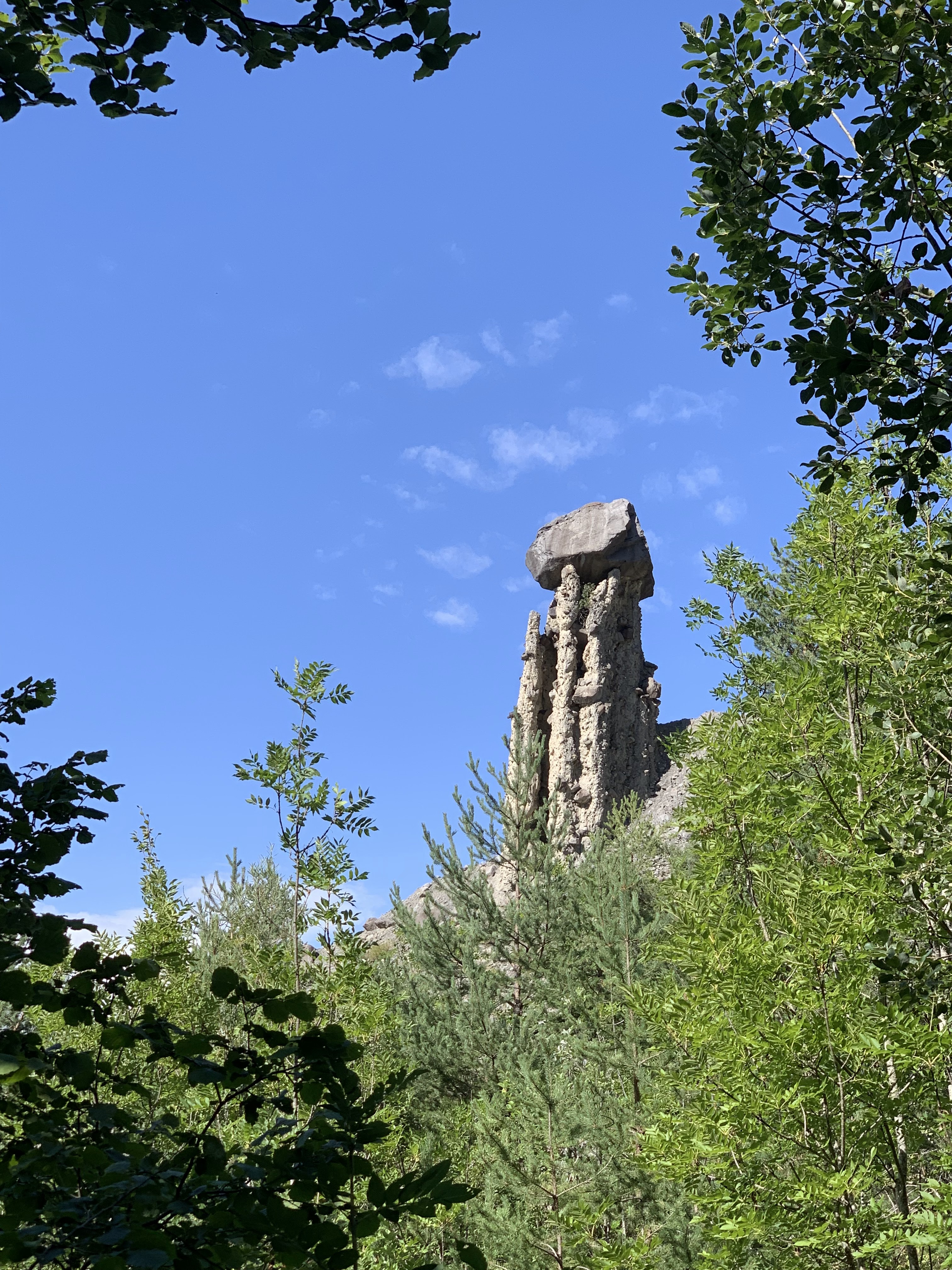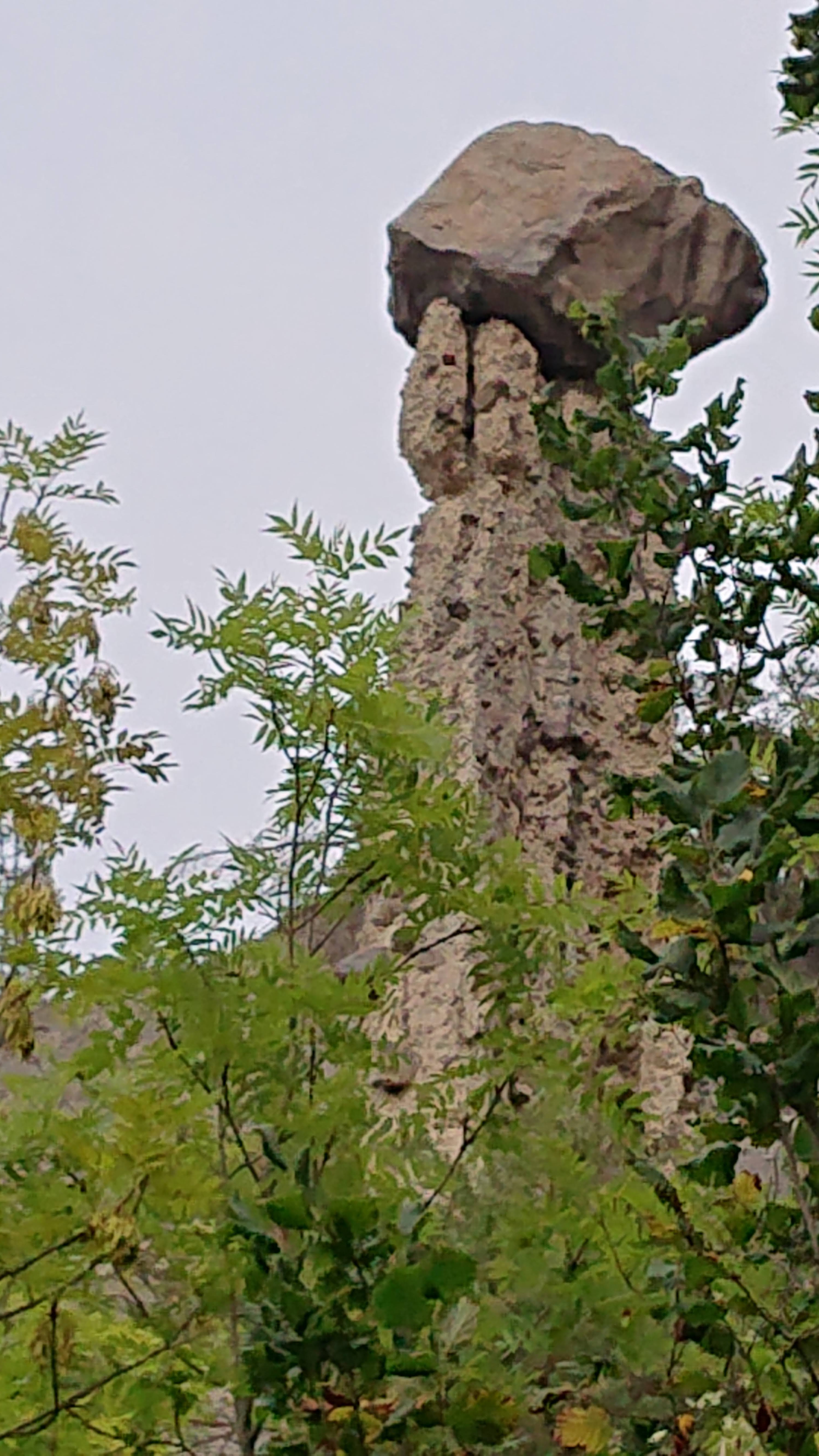 C'est un site géologique très étonnant que l'on peut voir ici. La montée est raide, la descente glissante mais le risque vaut la peine de monter, de voir de plus près (mais pas trop), ces cheminées suportant des pierres bien lourdes